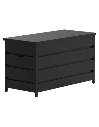 NISIS Hyndeboks udført i et design af sortlakeret aluminium. Hyndeboksen rummer 400 liter og måler 75 cm i højden og 130 x 60 cm i bredde og dybde.