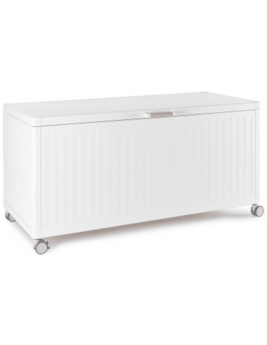 OCEAN Hyndeboks udført i et stilrent design af hvid pulverlakeret aluminium og galvaniseret stål. Hyndeboksen måler 70 cm i højden og 141,6 x 72 cm i bredde og dybde.