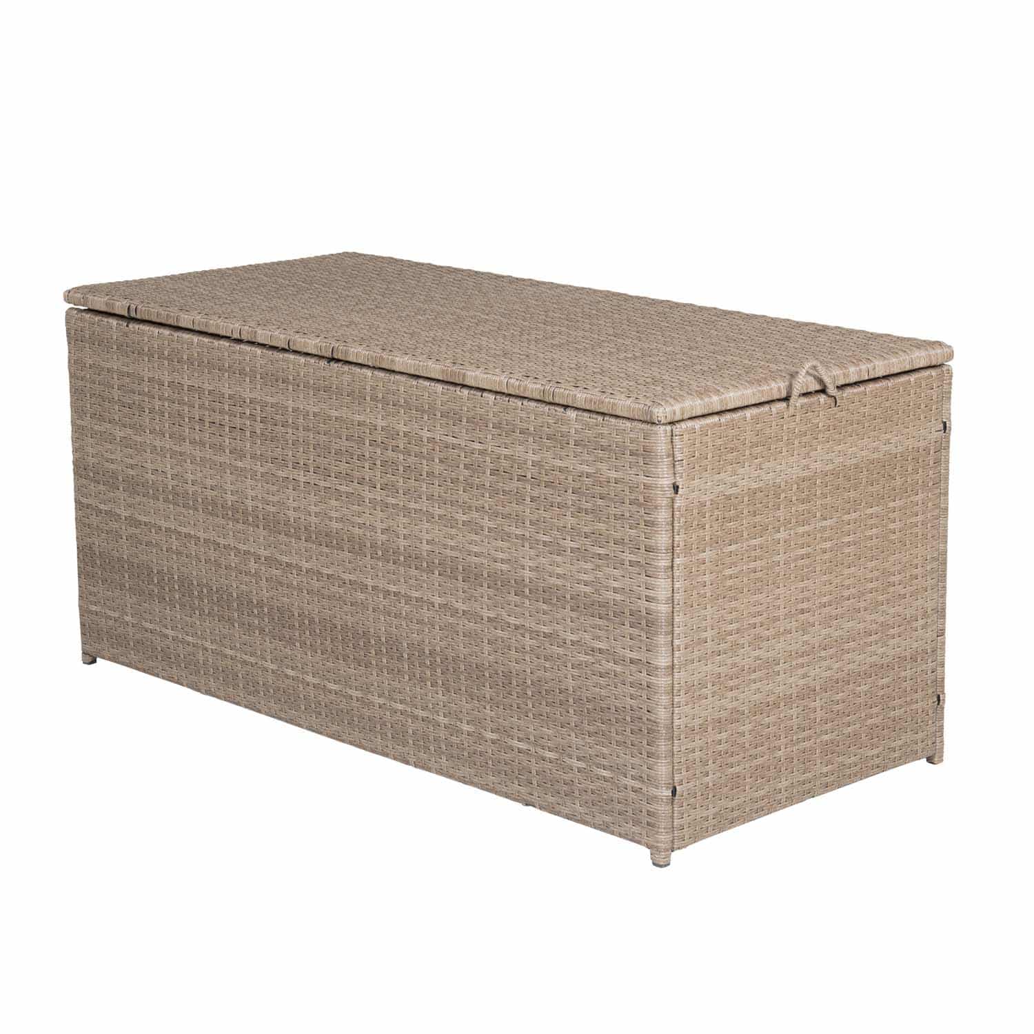 Venture Design London hyndeboksen kombinerer tidløst naturrattan med en slank stålramme for et varmt og moderne udtryk på terrassen. Den rektangulære form giver et roligt, organiseret look, som løfter havemøblernes samlede stil. Finishen